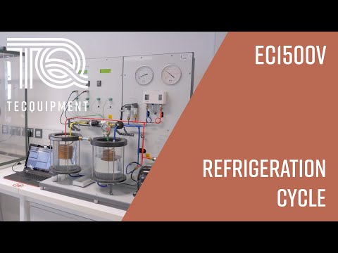 Esta unidad de ciclo de refrigeración simple permite al estudiante aprender las etapas de la refrigeración en un nivel de ingreso. Los estudiantes aprenden sobre las gráficas de Presión-Entalpía y las utilizan para determinar el coeficiente de rendimiento (COP), el sobrecalentamiento y el sub enfriamiento de los cambios de entalpía. El circuito de refrigeración cuenta con medidores de presión alta y baja, un interruptor de presión, visor, secador de filtro y una válvula de Expansión de Termostato TEV. El circuito también incluye transductores de presión que se conectan a la instrumentación. Tanto el evaporador como las bobinas del condensador se sumergen en un baño de agua. Una bomba pequeña proporciona una mezcla suave del agua para ayudar a mantener una condición de estado estable.