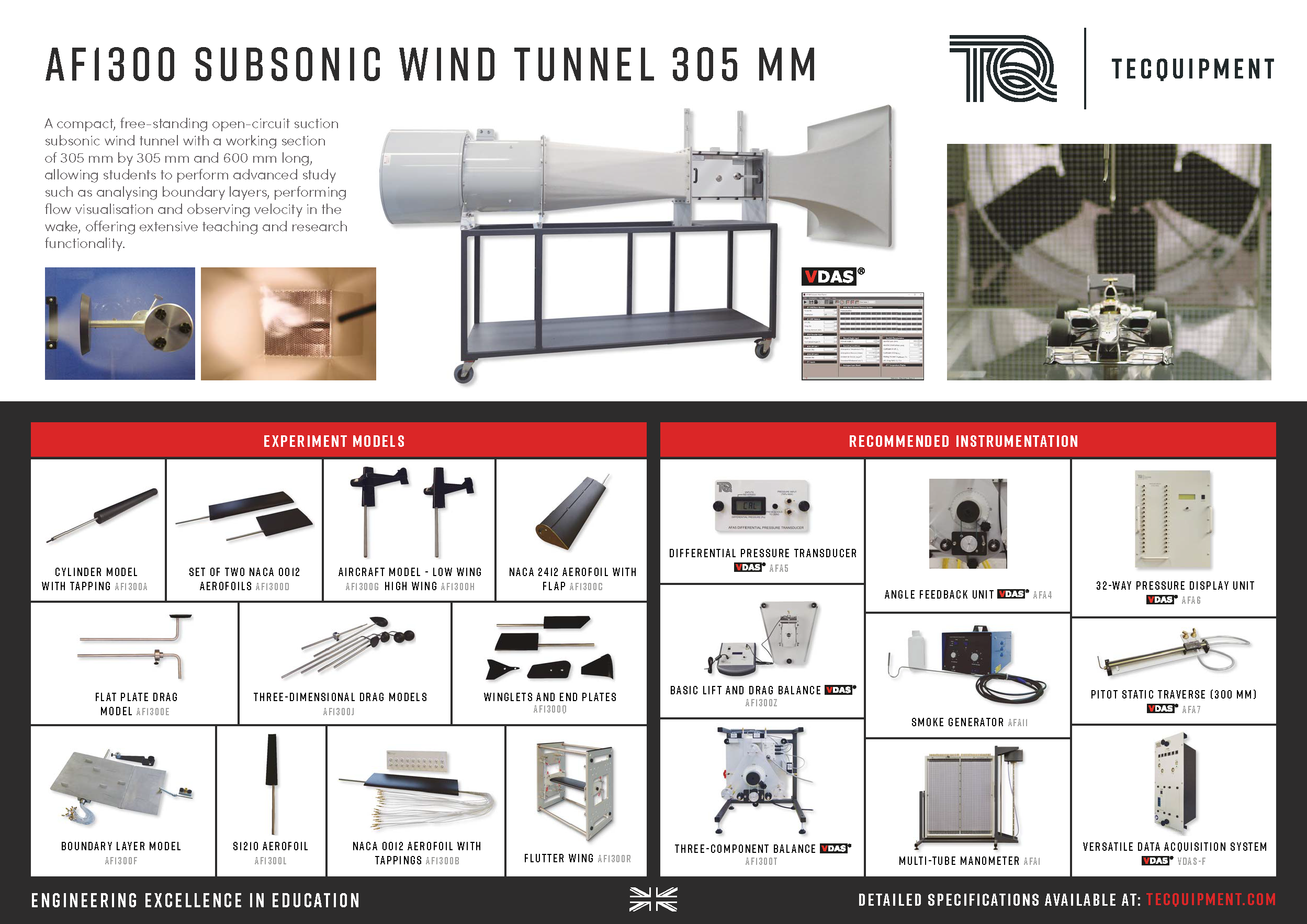 For use with the AF1300 Subsonic Wind Tunnel. Explore the poster here