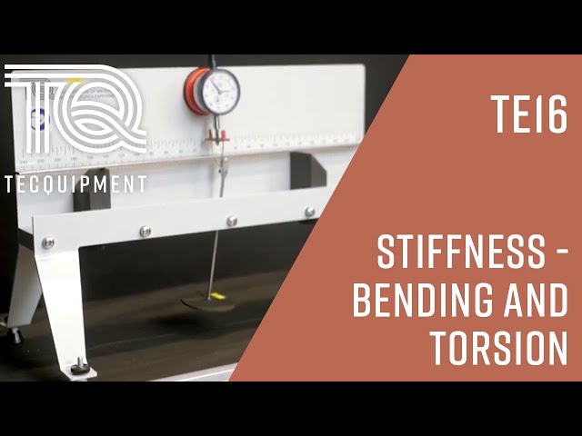 A compact, bench-mounting frame that holds different parts for investigations into stiffness of materials. The standard TE16 includes parts for tests in bending of beams of different materials and cross-section. Optional additional kits allow investigations into different beam fixings and torsional stiffness.